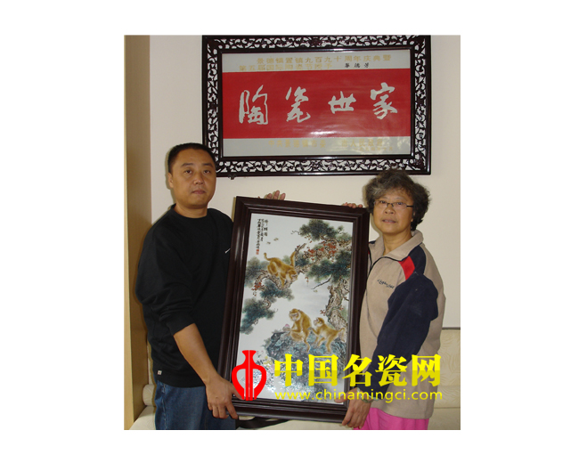 毕德芳 蜂猴图 粉彩瓷盘
