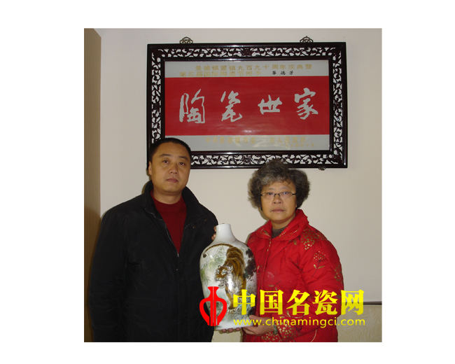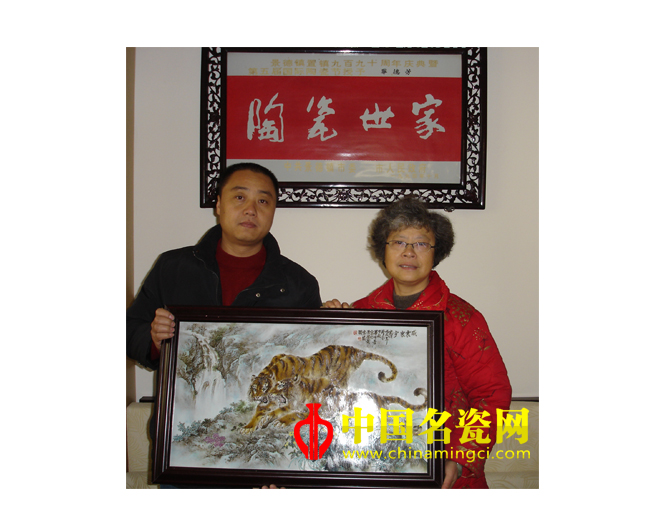 粉彩《虎》瓷板