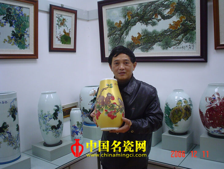朱正荣“紫舞临风鼠自乐”新彩瓶