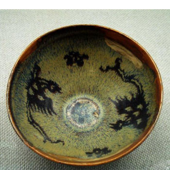 吉州窑的黑瓷最具盛名,它利用天然黑色涂料,通过独特的制作技艺,产生出变化多端的纹样与釉面,达到清新雅致的效果。黑釉窑变瓷中的鹧鸪斑,兔毫纹是当时极为名贵的品种。黑釉剪贴花瓷为吉州窑所独创。特别是木叶贴花瓷,更是吉州窑的一绝!在全国其它窑址中都没有发现这种产品,而且到目前为止,尚未仿制成功。