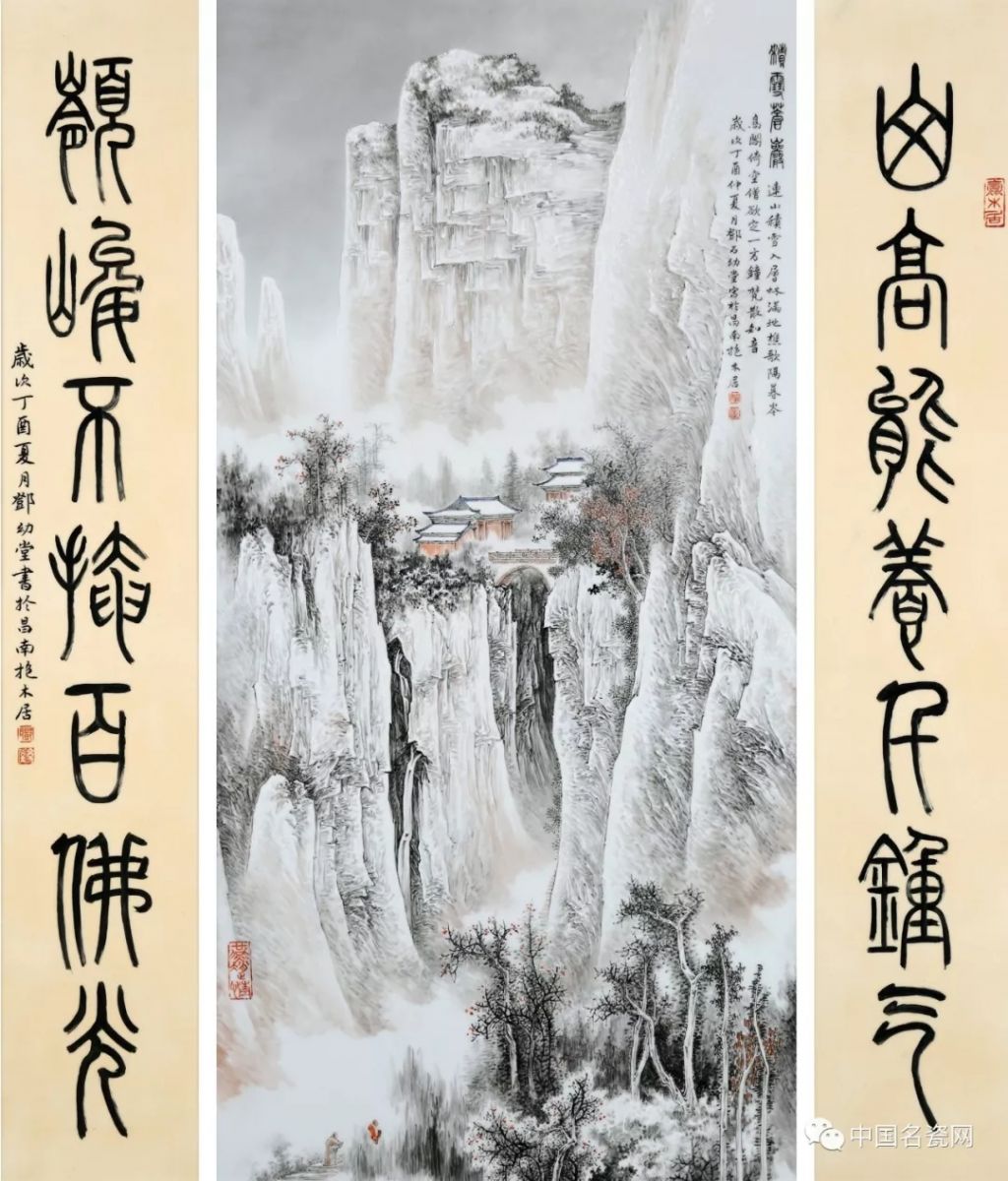 邓幼堂 积雪苍岩 瓷板