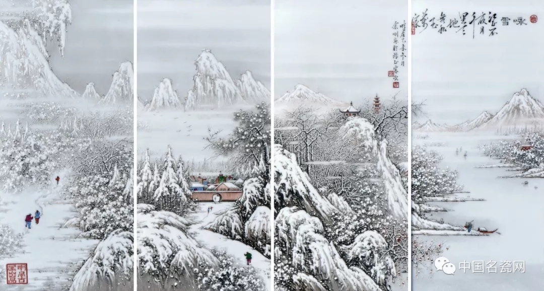 余刚 瑞雪四景 镶器