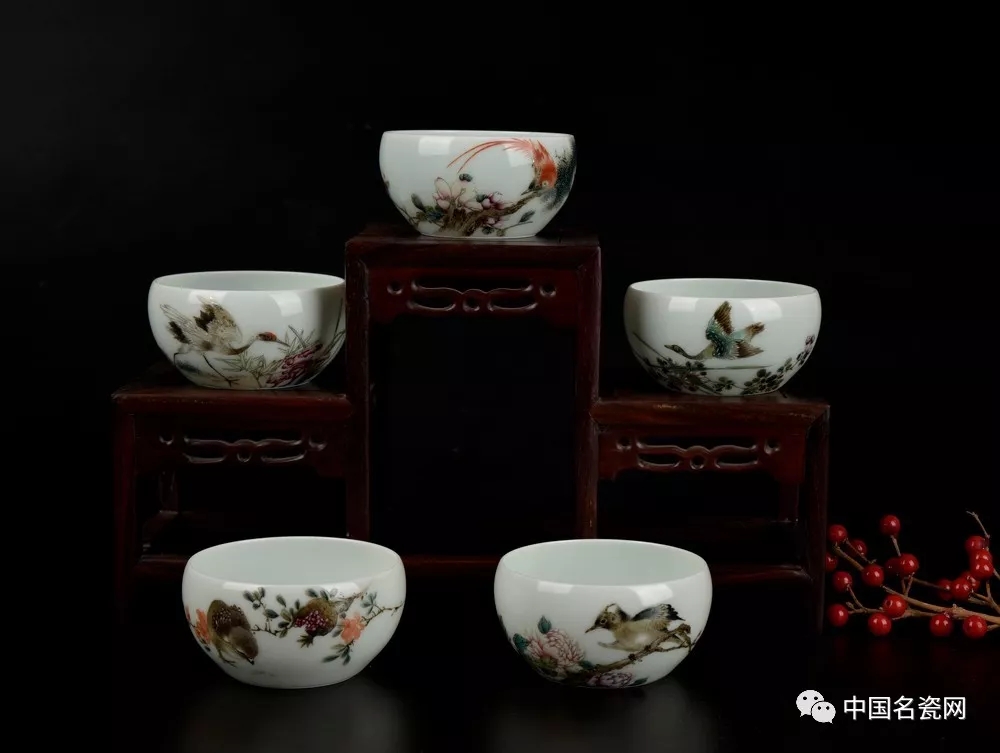 毛光辉 花鸟五福杯