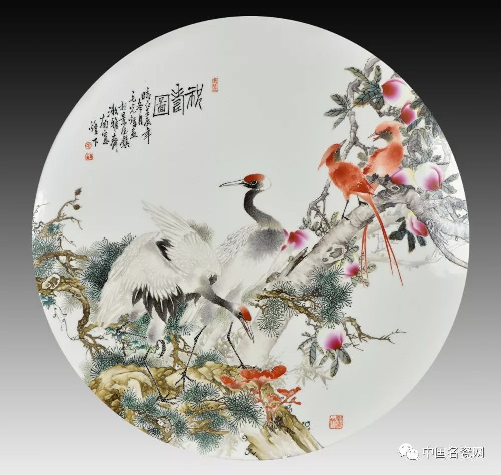 毛光辉 祝寿图 瓷板