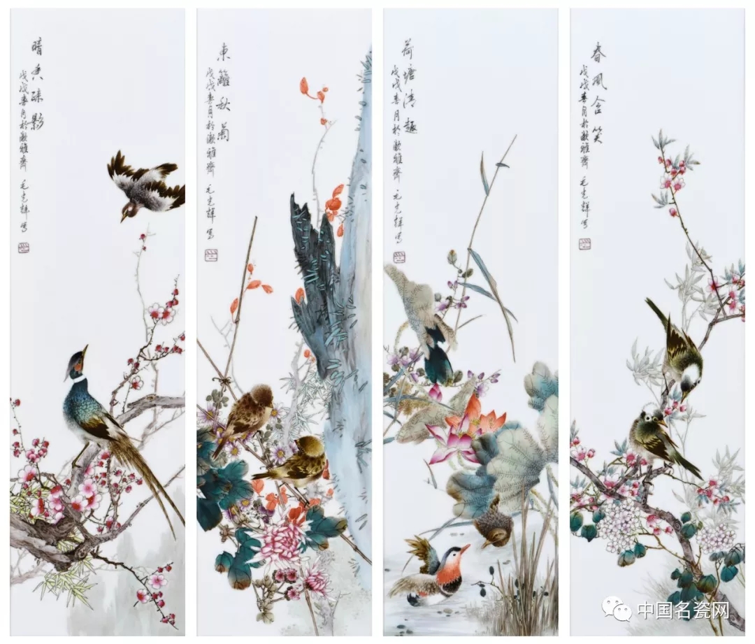 毛光辉 四季花鸟 瓷板