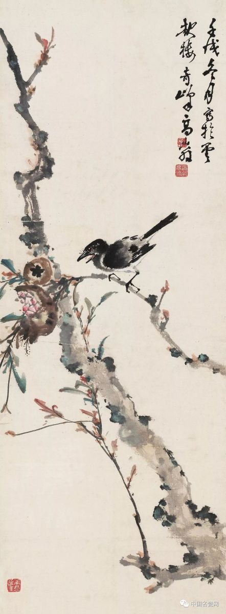 高奇峰 石榴小鸟/纸本镜心