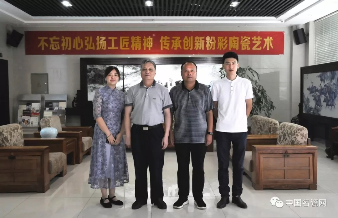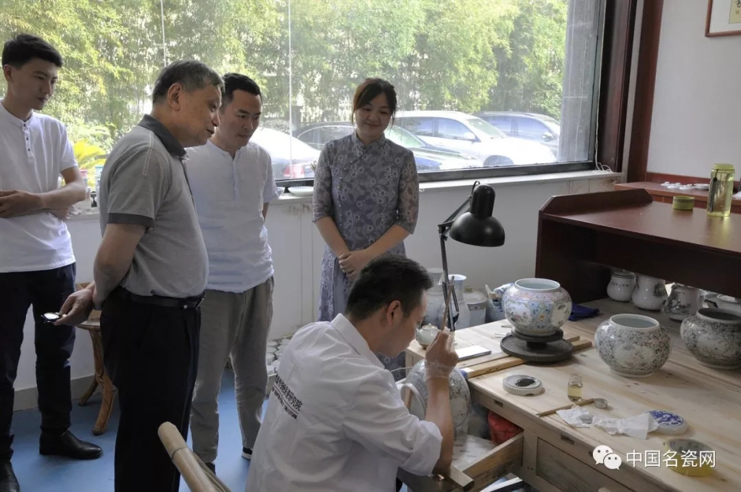 2019年8月5日下午,十三届全国人大常委会委员、江西省人大常委会副主任、民革中央常委、民革江西省委会主任委员马志武,景德镇市政府副市长、市侨联主席、民革江西省委员会副主任委员熊皓,景德镇市政协常委、中国工艺美术大师刘文斌一行莅临传统粉彩瓷研究院进行参观,并对今后的工作进行指导。