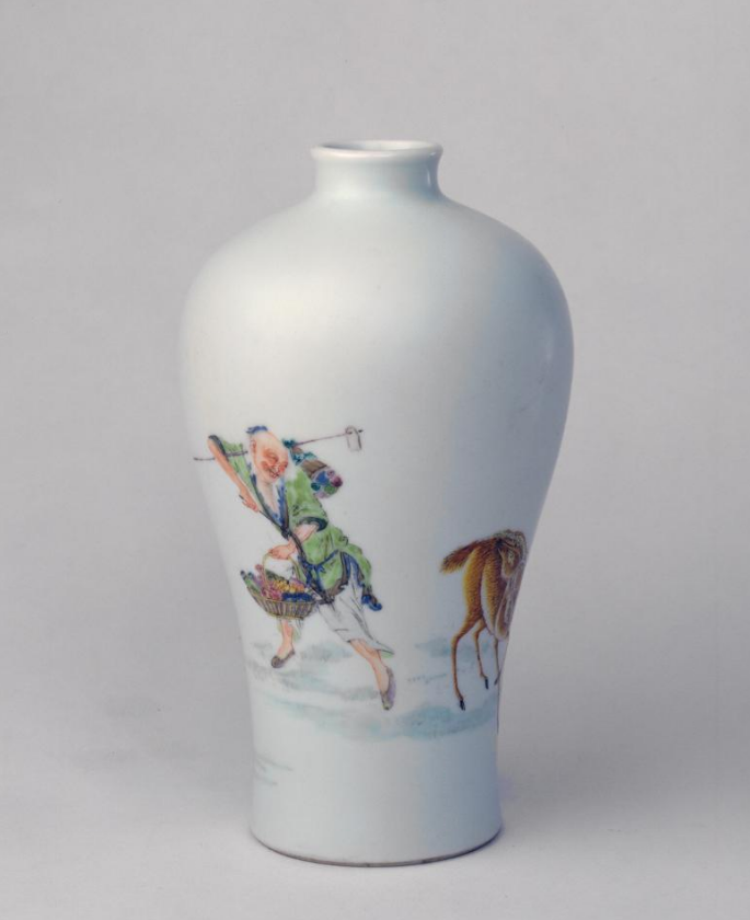 雍正粉彩人鹿纹梅瓶