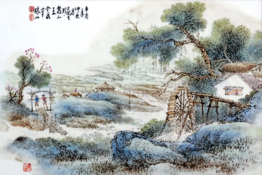 清末民初,浅绛彩的出现,改变了清代粉彩瓷画只题写帝王年号,而不署作者名号的纪年款形式,从而丰富了瓷画作品的艺术内涵。