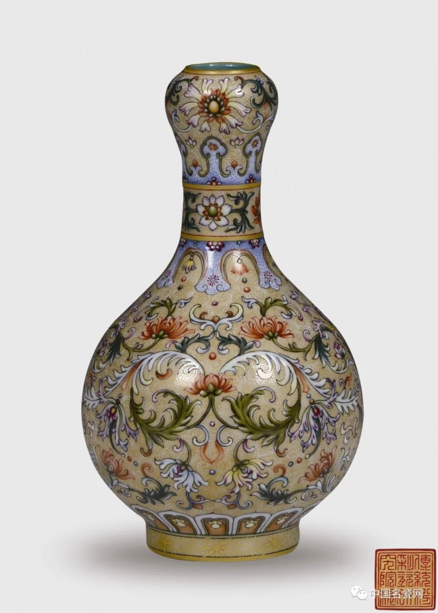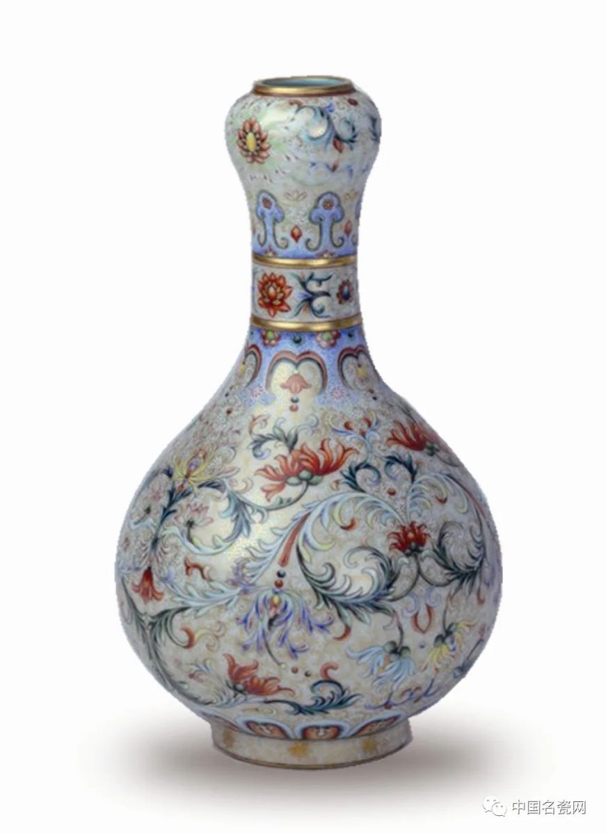 ....乾隆帝对珐琅彩瓷器珍爱有加,珐琅彩瓷器的烧制数量超过康雍两朝,造型更加丰富,瓶类中就有蒜头瓶。宫中内务府珐琅作人才济济,分工更加具体,工艺制作更加精细。