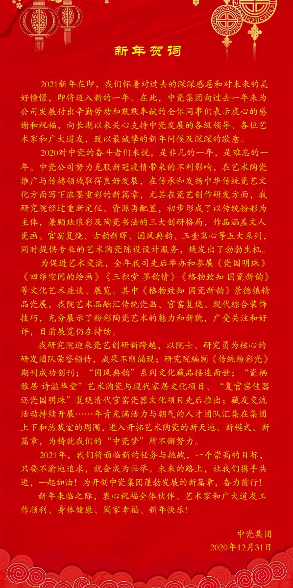 凝心聚力,砥砺前行——中瓷集团2021年新年贺词