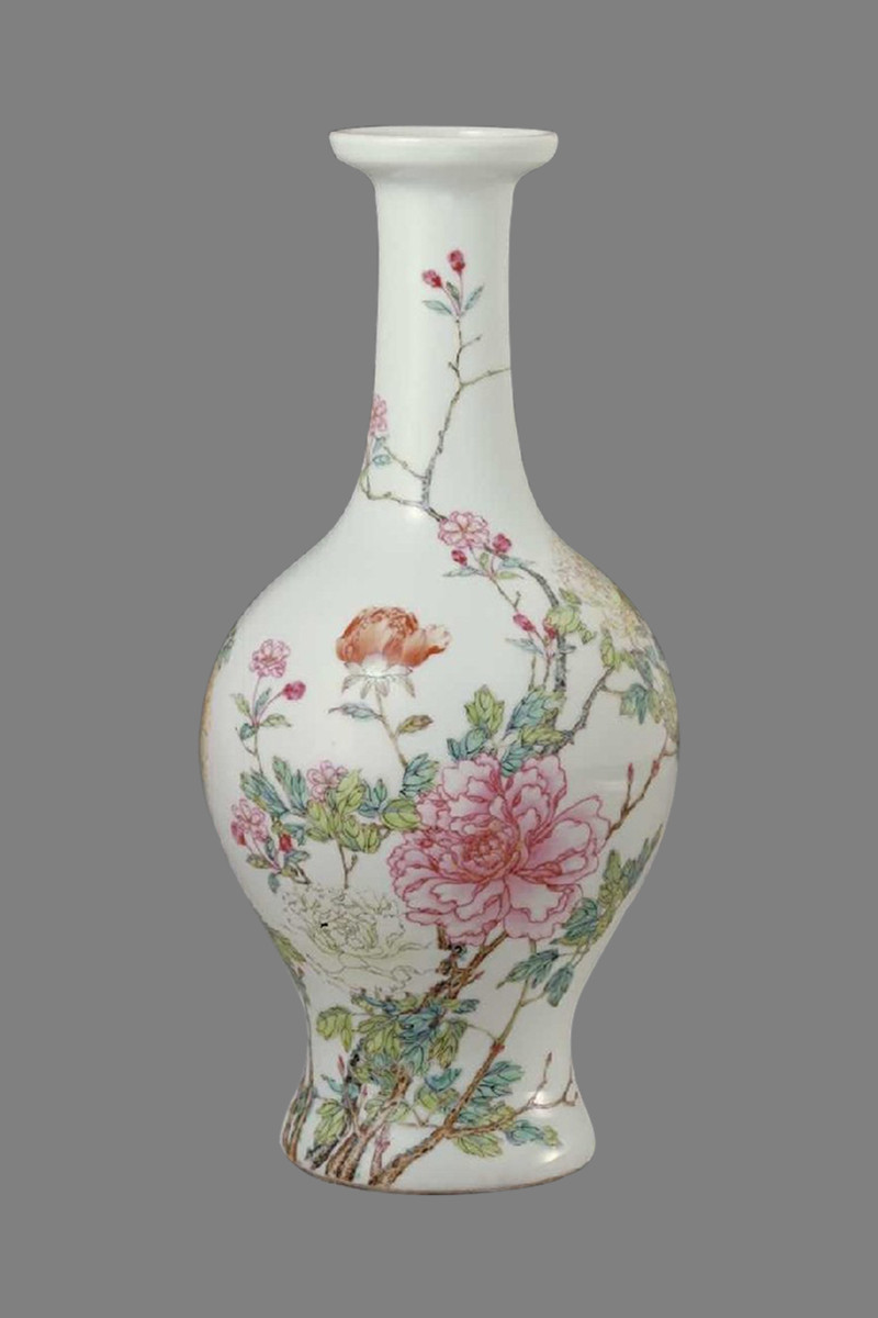 ....此瓶形体各部分比例协调,轮廓线条过渡柔和,画面构图疏朗有致,色彩淡雅宜人,每枚花瓣和叶片都描绘精细,质感逼真,堪称雍正粉彩瓷器中的佳作。