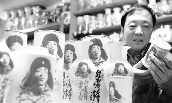 在唐山市,李慧武在家中精心擦拭着自己收藏的一件件有关雷锋的陶瓷纪念品。李慧武说,他有生之年最大的愿望是,将自己多年收藏的雷锋陶瓷奉献给社会,让“雷锋”在唐山安家。
