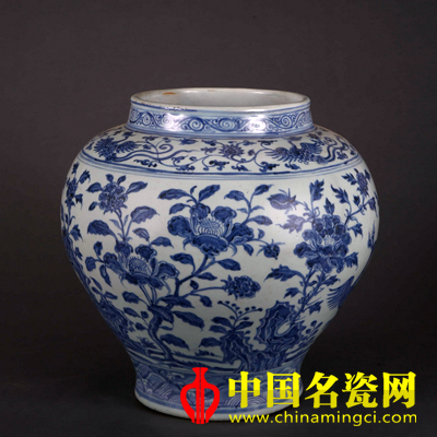 明早期青花花卉罐