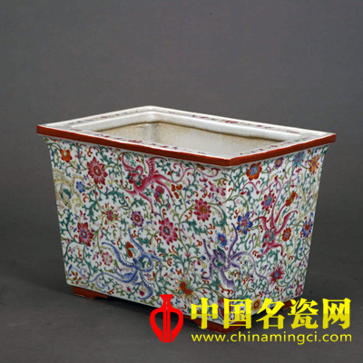 清咸丰 粉彩花卉龙纹长方盒 “大清咸丰年制”款