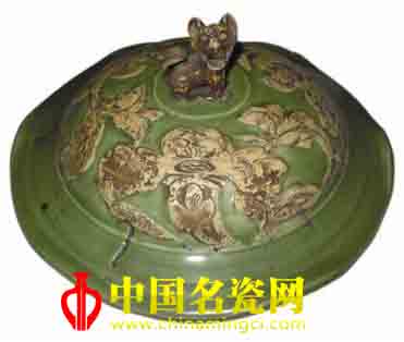 元瑞兽钮荷叶盖罐遗盖