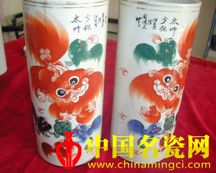 据报道,陕西西安的一位收藏家吴宏勃先生花了十几年时间收藏了数百件太师少保,一排排的瓷器形状各异,却有着同样的特点,那就是瓷器上绘制的图案都是狮子。从茶壶到碗,到茶杯,再到水盂,不管是文房用具还是生活用品,上面的那只栩栩如生的狮子都是最惹人眼的。