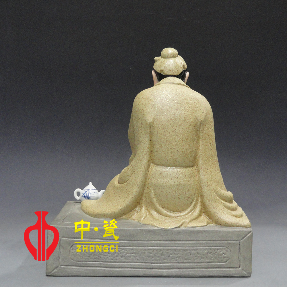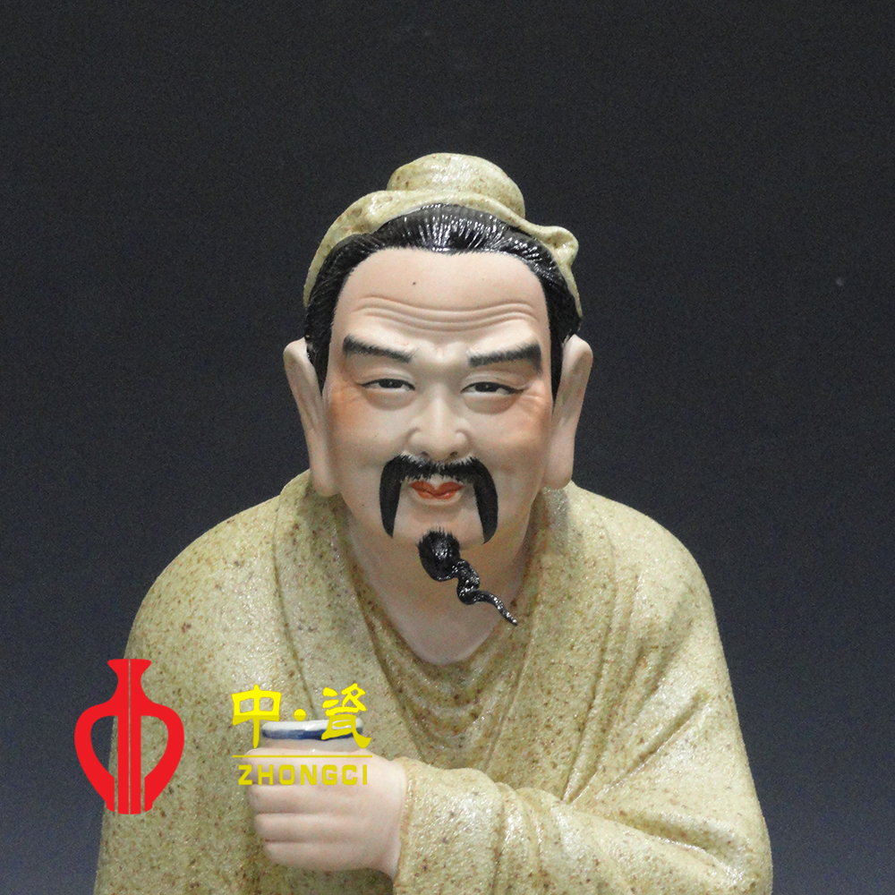 “饮甘品茗话茶事,抚今追忆昔陆翁”。对中国茶业和世界茶业做出了卓越贡献的陆羽,被誉为“茶圣”,奉为“茶仙”,祀为“茶神”。王强彪老师陶瓷雕塑的形式让茶圣的形象更为立体化,形象生动,内涵丰富,色彩淡中见雅,手法细处见功夫。王强彪老师先就职于景德镇雕塑瓷厂,师从中国工艺美术大师刘远长先生,得其真传,作品多为历史人物,格调高雅,耐人寻味。