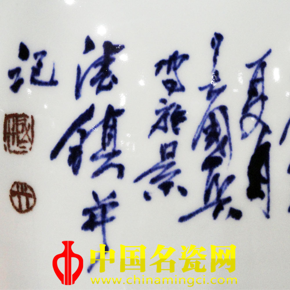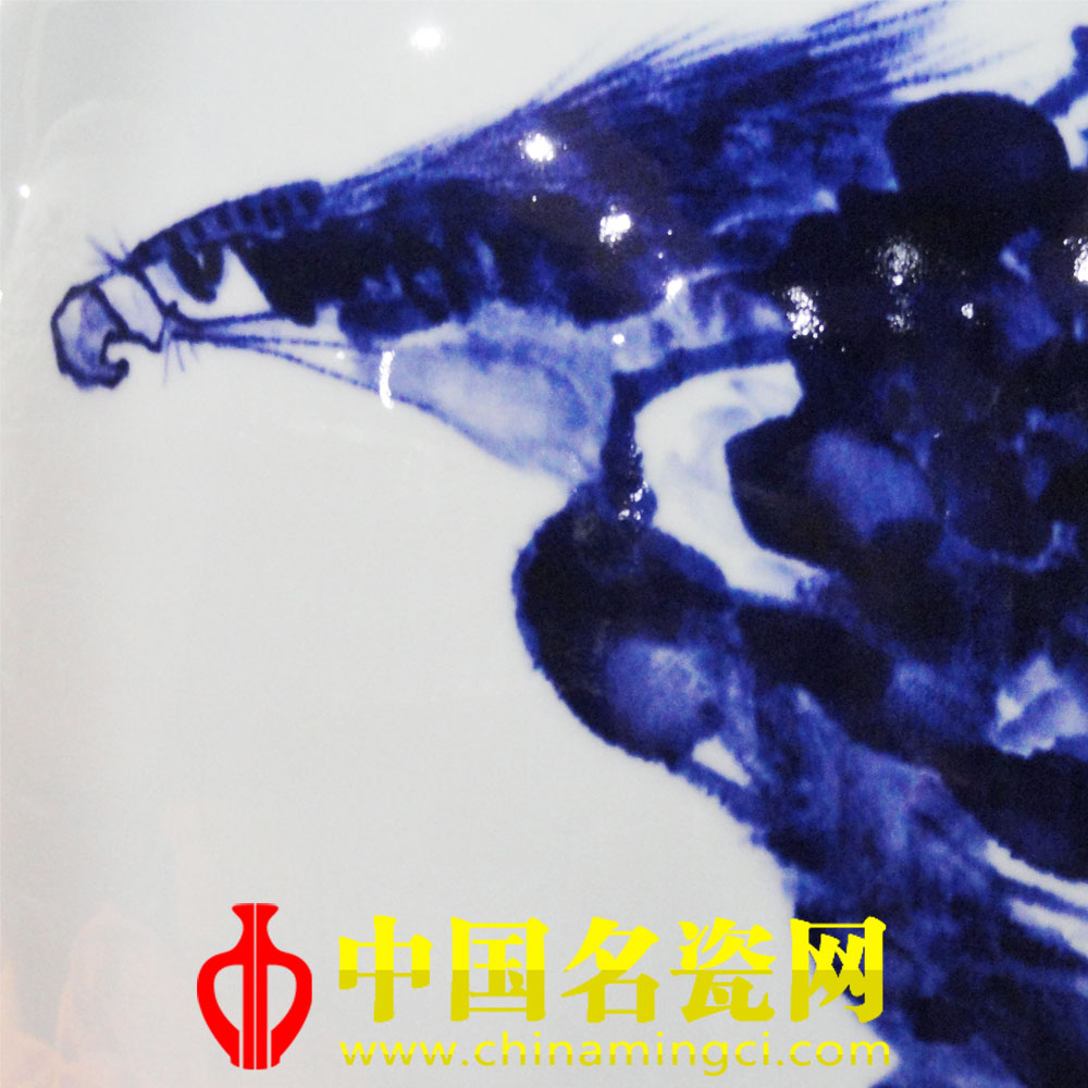 此作品所绘雄鹰用笔灵动,不拘泥于形似而力求神似。在挥洒自如中为我们创造了秀雅、俊朗、高远、深邃的艺术情境,画面与瓶型相互映衬,相映生辉,把清新和典雅、传承与创新有机结合,形成了富有个性色彩的陶瓷绘画风格。