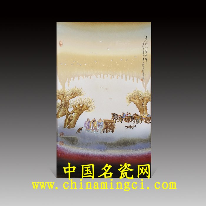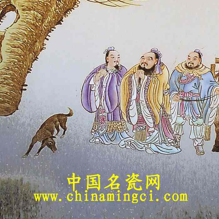 作品打破传统人物画的一般画法,以釉变流变粉墨彩来表现孔夫子的圣贤。李老师发挥高温色釉流动产生的效果隐去人工制作的痕迹,颇有特色的表现出空旷的原野,萧瑟的疏林,让观众产生无尽的想象力,人物线描精细,与古拙的树木形成鲜明对比作品讲究立意,用笔繁简有度,极富个性魅力。