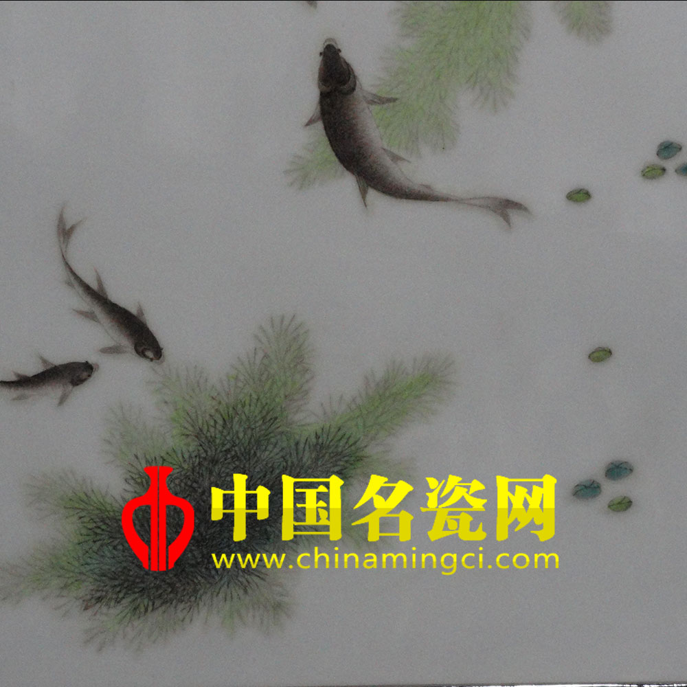 邓爱英 1963年出生于景德镇陶瓷世家,景德镇市高级工艺美术师,系中国工艺美术学会会员、景德镇珠山画院会员、景德镇市民间文化艺术协会会员、景德镇市文联昌南瓷画院特聘画师。曾祖父为“珠山八友”之一的邓碧珊,自幼随父邓肖禹(陶瓷美术家)学艺,深得其父亲真传,并得到著名陶瓷美术家毕渊明、赵惠民等多位大师的指点。擅长粉彩鱼藻、花鸟,兼修人物、山水、走兽的绘制,且攻图案、釉下青花及青花斗彩等陶瓷综合艺术装饰技巧。“弄萍濯破镜花秋,掉尾扬鳍得自由。最怕碧峰岩下影,风藤如线月如钩。”邓爱英老师得邓氏画派画鱼精髓,独运功力。她画鱼得其形更得其神,所画鱼群或顾盼生情、或聚首嬉戏、或遥相呼应、或结队悠游,可谓“游而不散”。