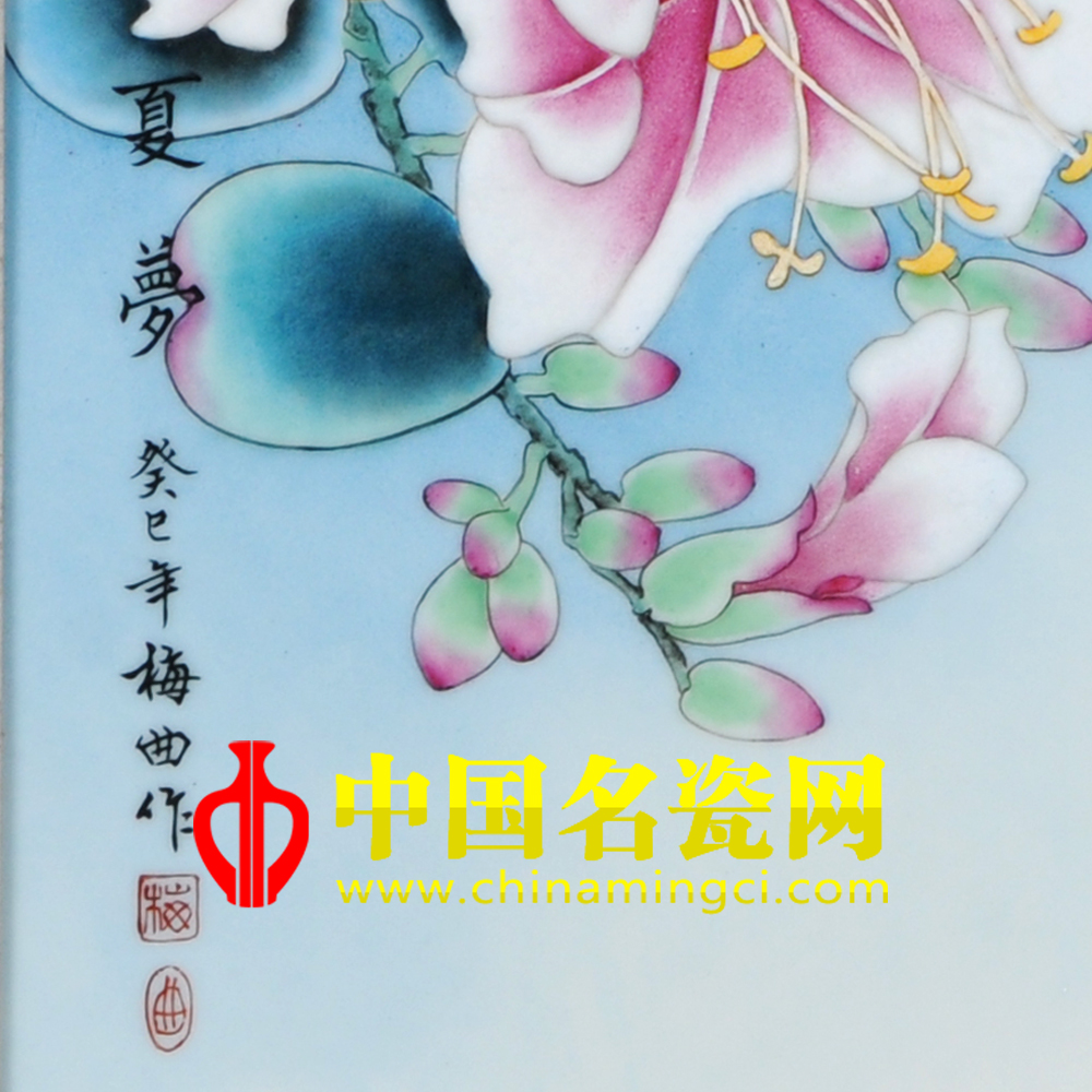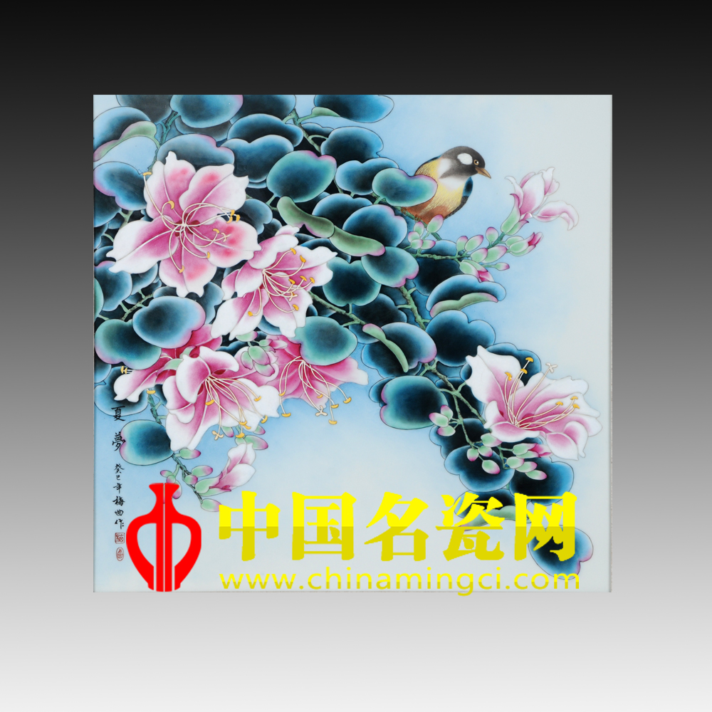 梅曲 景德镇第一中专高级教师,中国名瓷网合作老师,江西省工艺美术师,景德镇市高级陶瓷美术师,景德镇市传统粉彩瓷研究院院士。画风唯美,格调优雅。作品工整细腻,色彩丰富。擅长将西画的色彩构成与国画的笔墨情趣相结合.注重意境的营造,呈现出集趣味性、抒情性及装饰性于一体的风格。