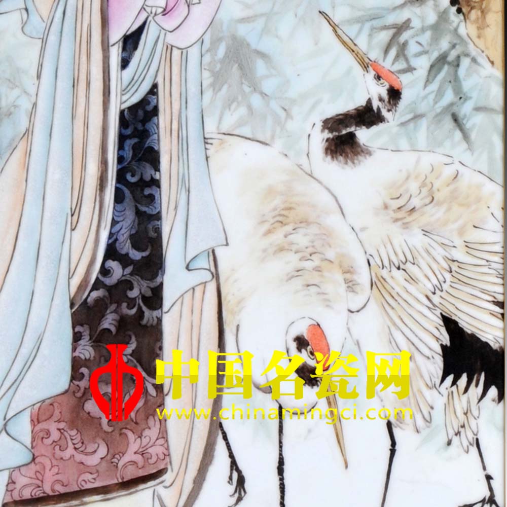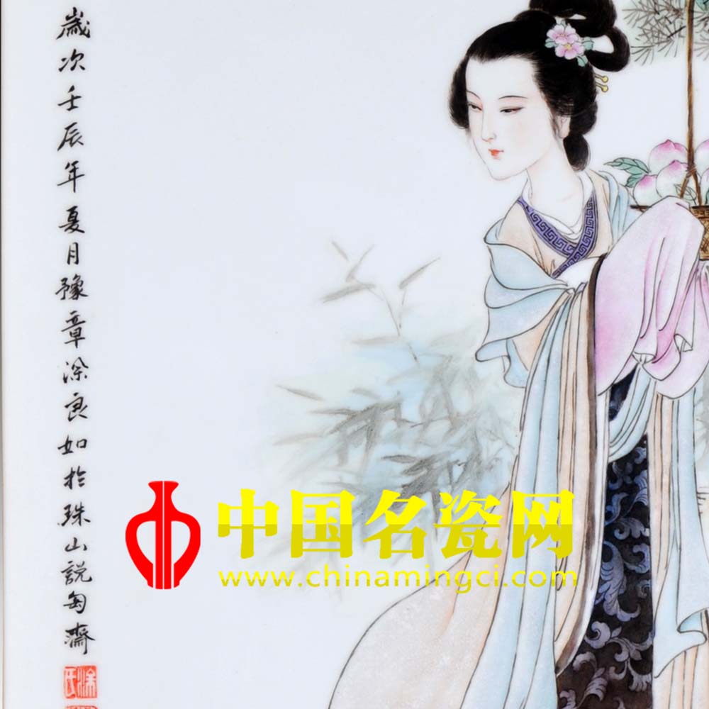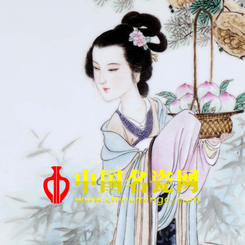 《麻姑献寿图》是非常经典而又充满吉祥寓意的题材,明代著名画家陈洪绶和清代海派画家任薰,以及近代国画大师任伯年都曾经有此作品留世。涂良如老师博采众长,吸取传统国画精髓的同时,又加以新时代仕女画的特色和景德镇特有的粉彩的工艺,让这一传统的题材焕发出时代的生机和色彩。