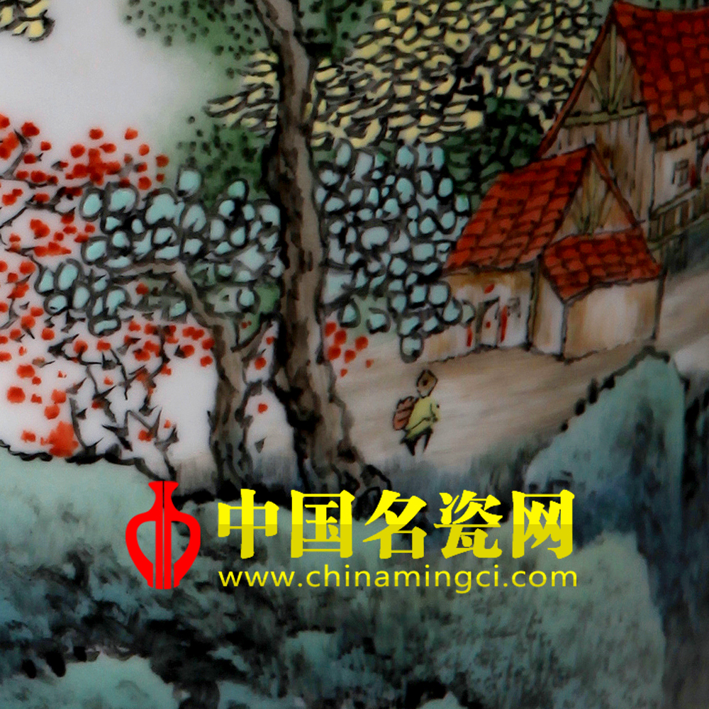 作品中远山影绰,逶迤连绵,隐现与缭绕的云雾之中,近处峰峦青翠,人舟闲静,掩映于繁茂的山林之间。整幅作品从左至右体现出一虚一实的画面关系,使整幅画充满了动感和张力。作者以石青染色表现山石各面,更添温润之感,山间繁林葱茏苍翠,茂树层峦间的茅屋、人烟、江边的船舶,成为整幅画的点睛处理,增添了生活气息,江水以留白处理,简洁明了,体现出作者精湛的笔法,表现了一幅依山傍水的世外桃源的画面。(靖晨硕)