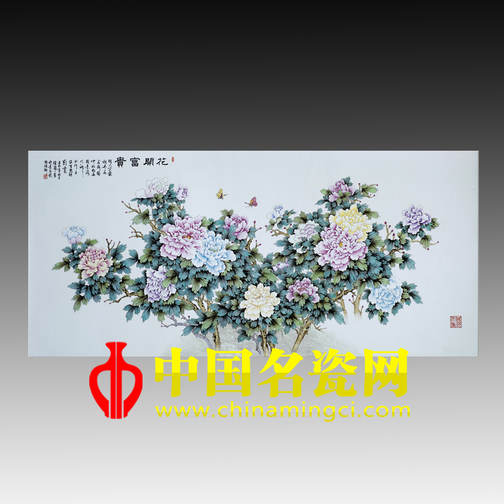 “何人不爱牡丹花,占断城中好物华”,牡丹雍容华贵,国色天香,有花中之王的美誉,作品中的牡丹,花朵锦簇,争奇斗艳,馥郁花香,气韵生动,加上蝴蝶翩翩飞舞,整个画面灵动有趣。作者设色讲究,构图别致,将牡丹的富贵姿色,气韵充分表现于画幅之中。(刘建格)