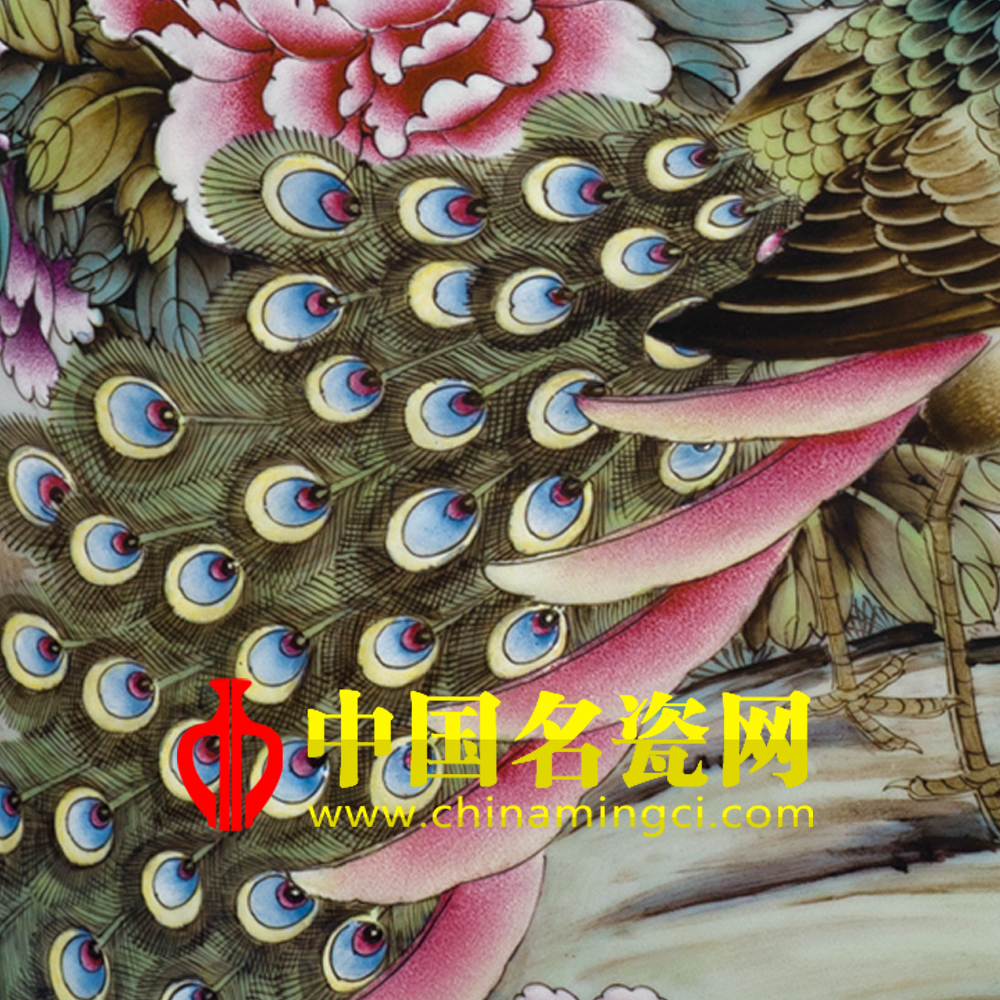 画面主题两只孔雀,立于灵石之上,华丽彩羽,身姿优美相依相伴,绶带鸟青松的掩映下,窃窃低语,美妙的瞬间一定有鲜花的映衬,牡丹花开正艳,绽放的花朵藏于绿叶之中迎接他们他们的温情,硕大的寿桃鲜艳欲滴,牡丹、孔雀,绶带,寿桃同时如画,表达了富贵长寿的主题。作品构图饱满,色彩鲜艳,充满富丽之气。(刘建格)