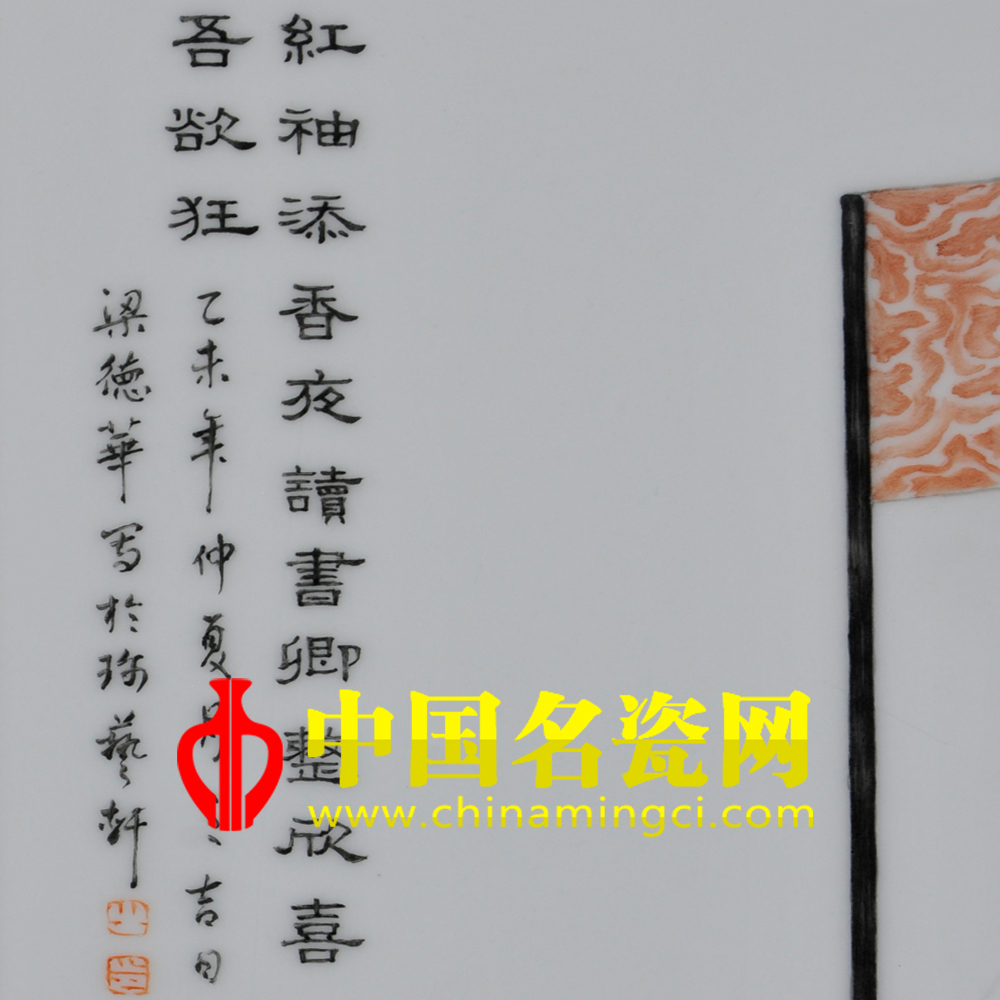 落款:“红袖添香夜读书,卿正欣喜吾欲狂。”乙未年,仲夏月之吉日,梁德华写作珎艺轩。(宿亚兰)