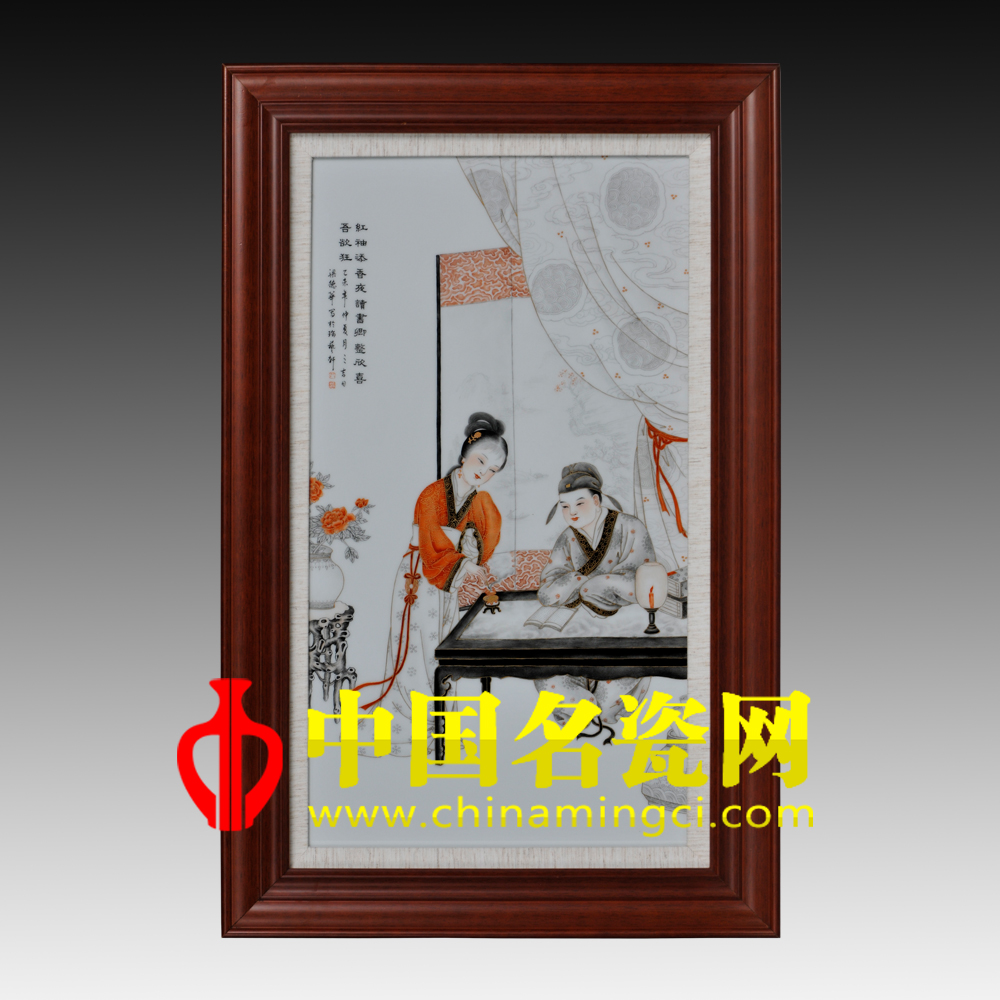 “绿衣捧砚催题卷,红袖添香伴读书。”旧指书生学习时有年轻貌美的女子陪读。“红袖添香”是中国古典文化中一个很隽永的意象,并且不可否认的是非常之美的意象。画中女子姿容曼妙,体态柔美,轻步裙裾,欲言还羞的形神与月色朦胧所营造的环境氛围恰到好处地揭示了人物内心的情致。此作品工笔中写意,故事性强,细节描慕精致,殊为难得。