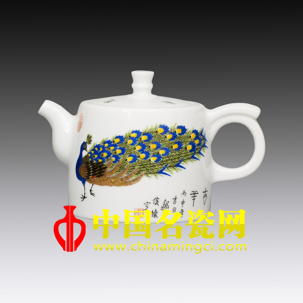 画面于于精致壶型上,工笔绘一只孔雀,身着华丽彩羽,色彩鲜艳,姿态优雅高贵,回头凝望,曲颈自然,神性优美之姿,脉脉含情之态,令人心生温暖。(刘建格)