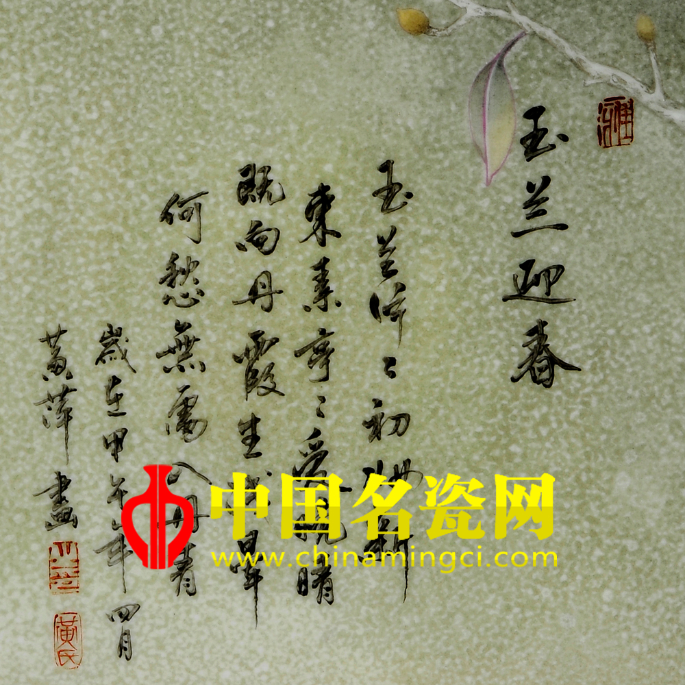 作品以黄色为底色,布置饱满,几株玉兰点缀其中,枝干劲健挺拔,玉兰或盛开,或含苞,展示了初春的勃勃生机,玲珑娇俏,错落有致,似有阵阵花香袭来,清丽雅致,玉兰是纯洁美好的象征。构图清新,色彩素雅,笔墨精到,古朴中有新意。(刘建格)