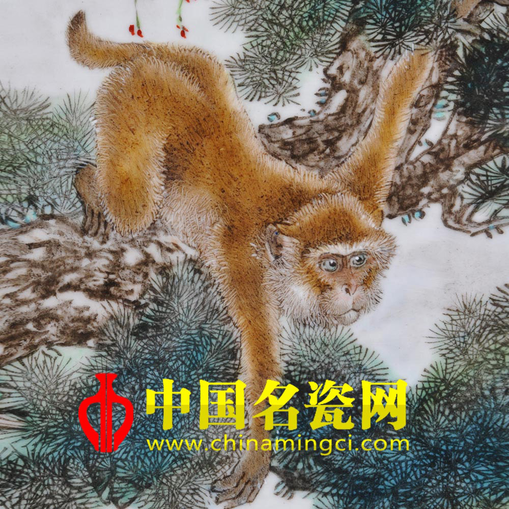 此图将“蜂”与“猴”组合,谐音“封侯”、“晋侯”之意。画中金猴神态可掬、机灵活泼,生动逼真。其勾染细致、敷色匀实,表现出极强的皮毛质感。苍劲古拙的松树,枝叶密簇,苍翠茂盛,生机盎然。毕老师笔法讲究骨力,画出的线条如锥如刻,入木三分。其设色也极其考究,以松树针叶之绿衬托出金猴的毛色之黄,对比鲜明。整幅画面笔法严谨,意境深远,皴擦垛染细致利落,真乃“毕氏走兽”独特的震撼力。