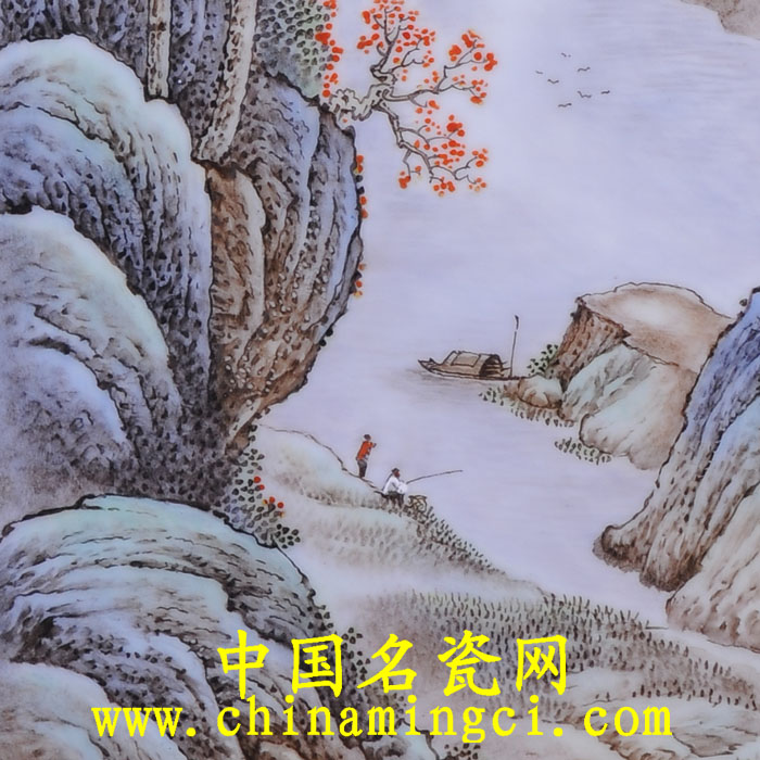 近年来,王昌虎在继承景德镇传统陶瓷山水精华的同时,注重创新,并揉合中国画的技法,应用于陶瓷上,王昌虎尤其擅作风、雨、农家,渔、樵、耕、读等,以江南山水为特色在粉彩山水中掺入了“浅绛法”的笔意,达到了“设色相和,艳不伤雅”的艺术效果。