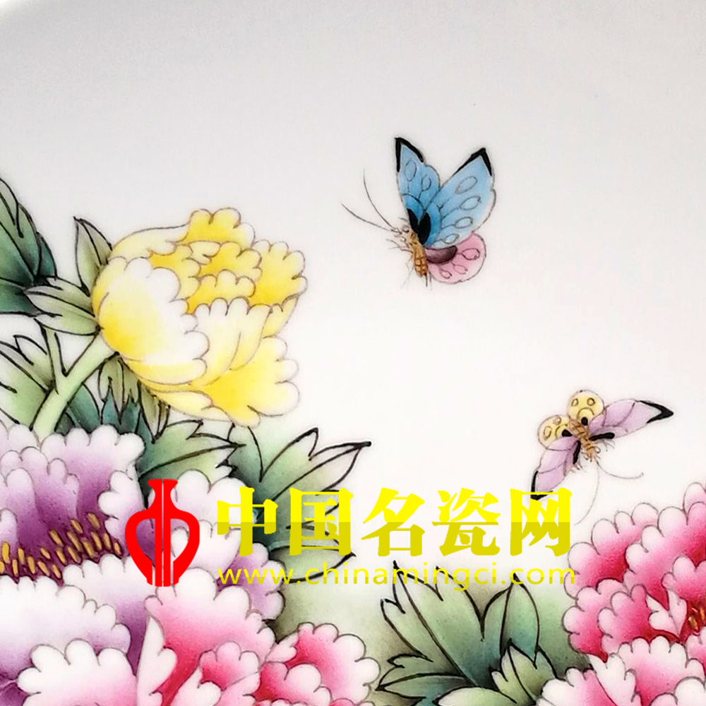 唯有牡丹真国色,花开时节动京城。”牡丹花在唐代推崇到“国花”的地位,牡丹以其雍容华贵赢得唐代人的喜爱。《花开富贵》作品,以圆盘作画,红、黄。粉、牡丹盛开,错落有致, 设色华丽,雍容大度,风骨傲然,没有半点媚颜。两只蝴蝶翩翩飞舞,画面动静结合,具有深厚传统功力,无不洋溢着大自然蓬勃向上的生机。也蕴含着富贵吉祥的美好寓意。