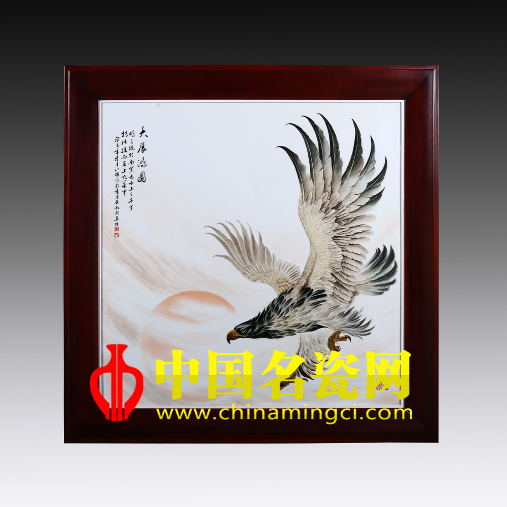 作品描绘一只雄鹰,展翅翱翔。画师通过对眼和喙的描写,准确刻画出雄鹰姿态矫健,威风凛凛,大片留白,表示海阔天空,红日冉冉升起,寓意旭日高升,前程似锦,大展鸿图之意。作者笔墨线条苍劲有力,笔势飞动,线条细秀,色感明朗,具有一定的艺术感染力。