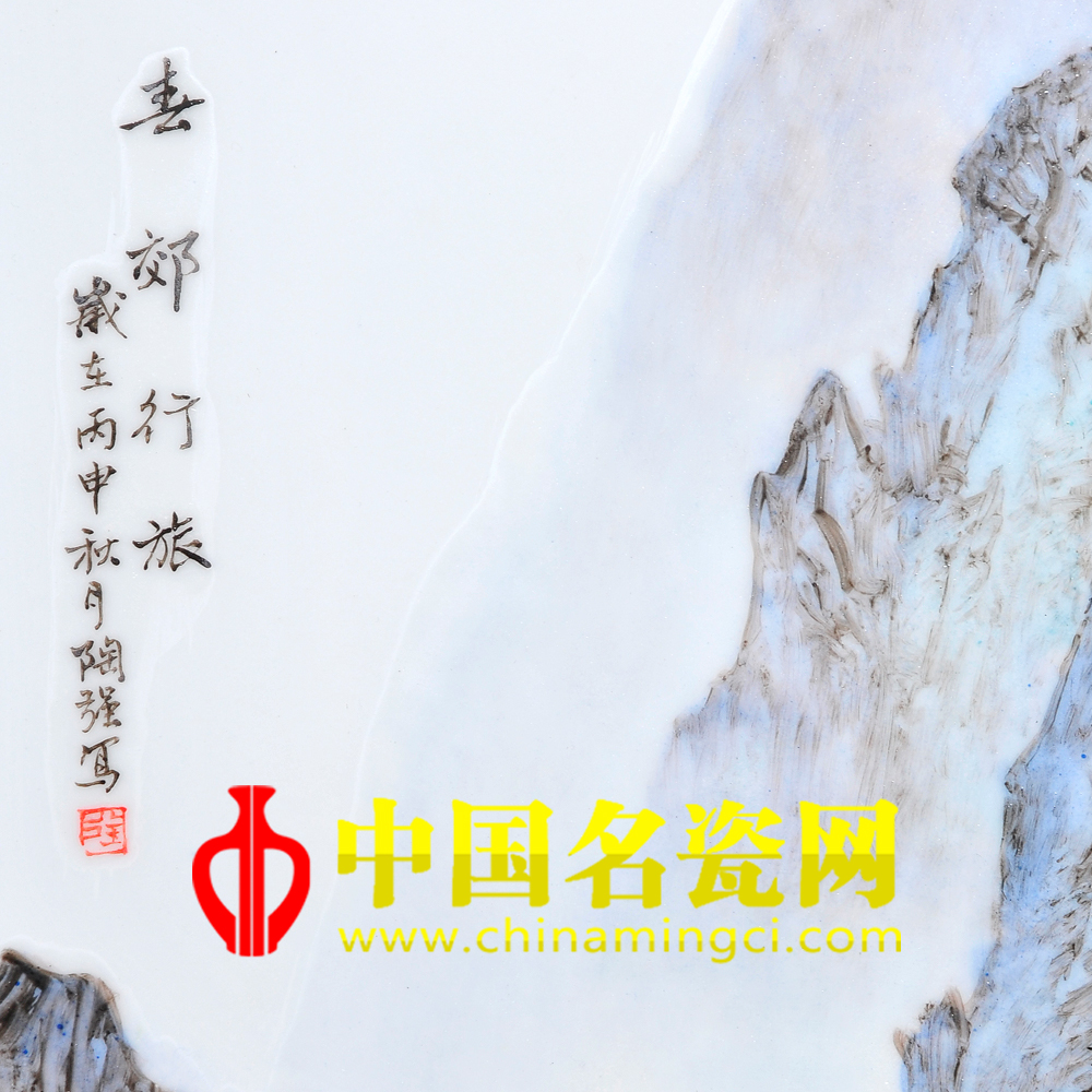 落款:“春郊行旅” 岁在丙申年秋月陶强写。