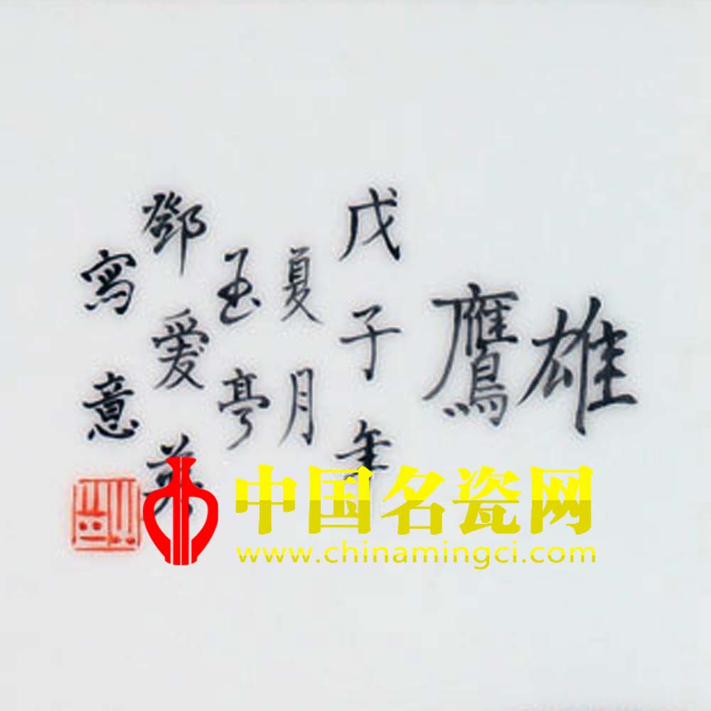 落款:“雄鹰戊子年夏月玉亭邓爱英写意”。