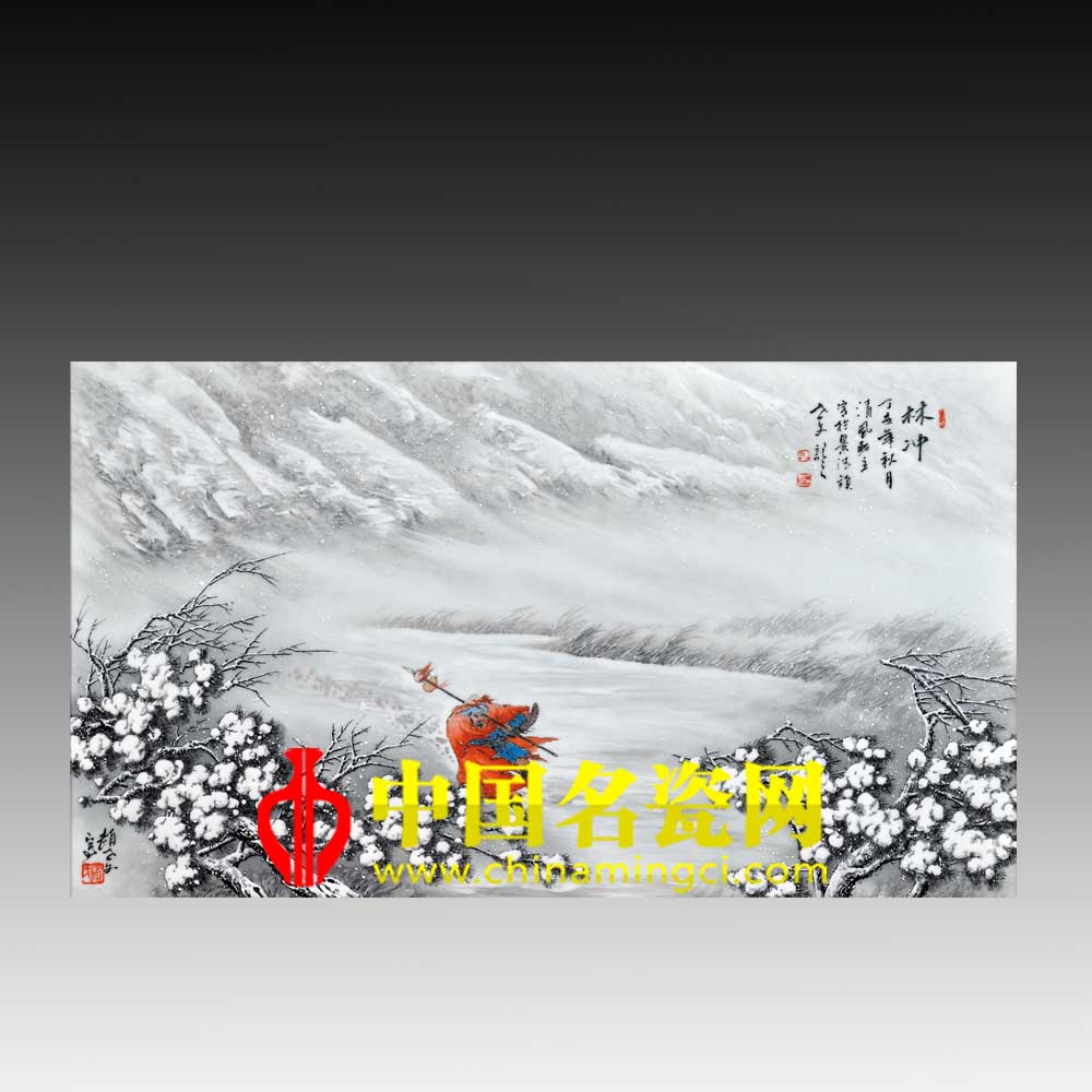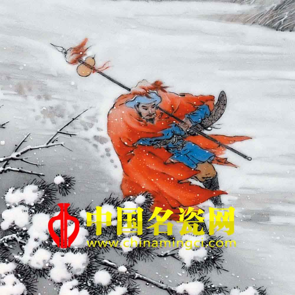 这件作品取材于中国四大名著之一《水浒传》,描写林冲冒着风雪投奔梁山的情景。林冲是小说《水浒传》中的人物。生性直,爱交好汉、仗义疏财、武艺高强、惯使丈八蛇矛。生得豹头环眼、燕颔虎、须身长八尺人称"豹子头"又唤“小张飞”。