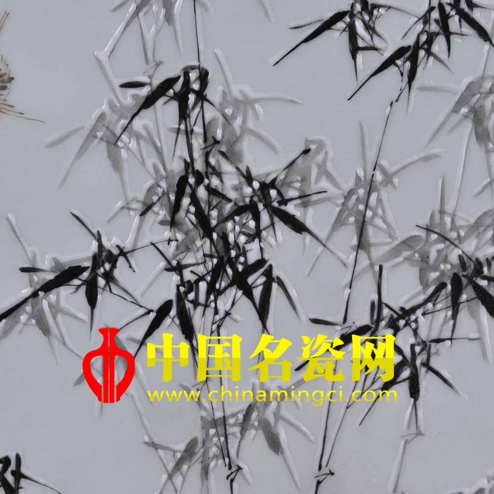 此图以工写结合的艺术手法描写了雪霁初晴时的竹林美景。作者用传统的“撇叶技法”画竹,聚散有章、虚实结合;工笔描状黄雀身裹艳羽飞绕于竹林中,动静结合、艳哑互衬;画石的方法自出机杼,不显勾勒皴擦的痕迹却能表现出冰封雪积的渚石质感。可见其无论是构图立意、勾线设色还是题材选取、才质运用上,都是一种承继中有创新、仿拟外见蹊径的笔踪墨韵。整个画幅气势俊迈,风神肃散。